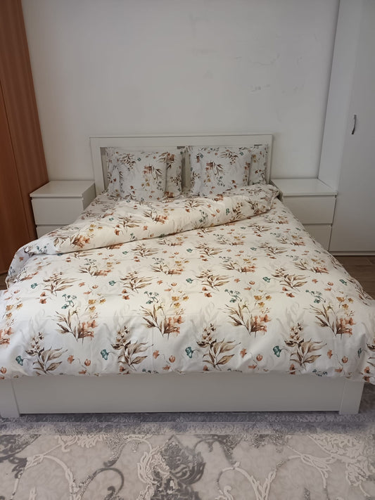 Lenjerie de Pat Dublă din Bumbac Ranforce 100% – Maro cu motive florale