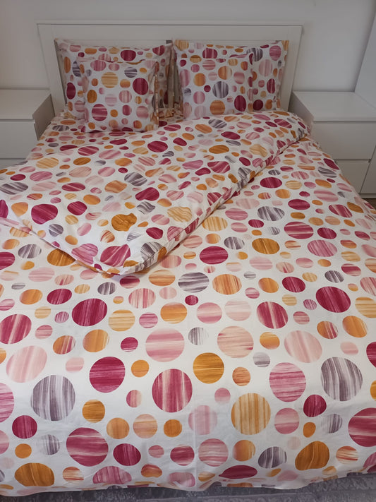 Lenjerie de Pat dublă din Bumbac Ranforce 100% – Model cu Buline (Vișiniu, Portocaliu)