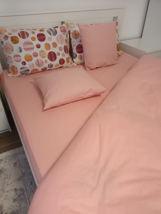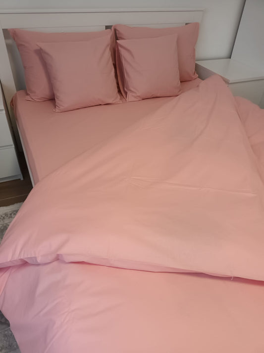 Lenjerie de Pat Dublă din Bumbac Ranforce 100% – Roz Simplu